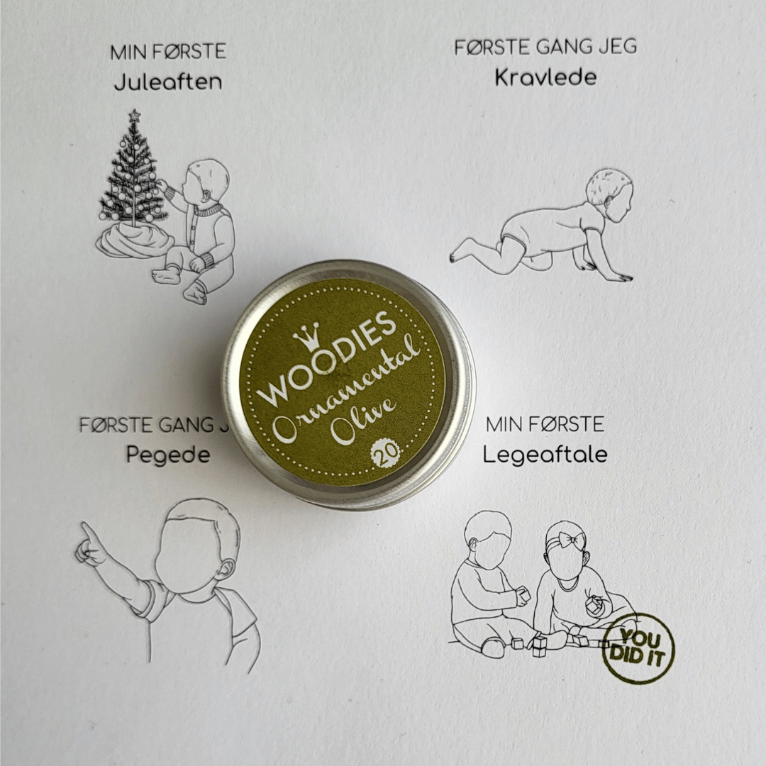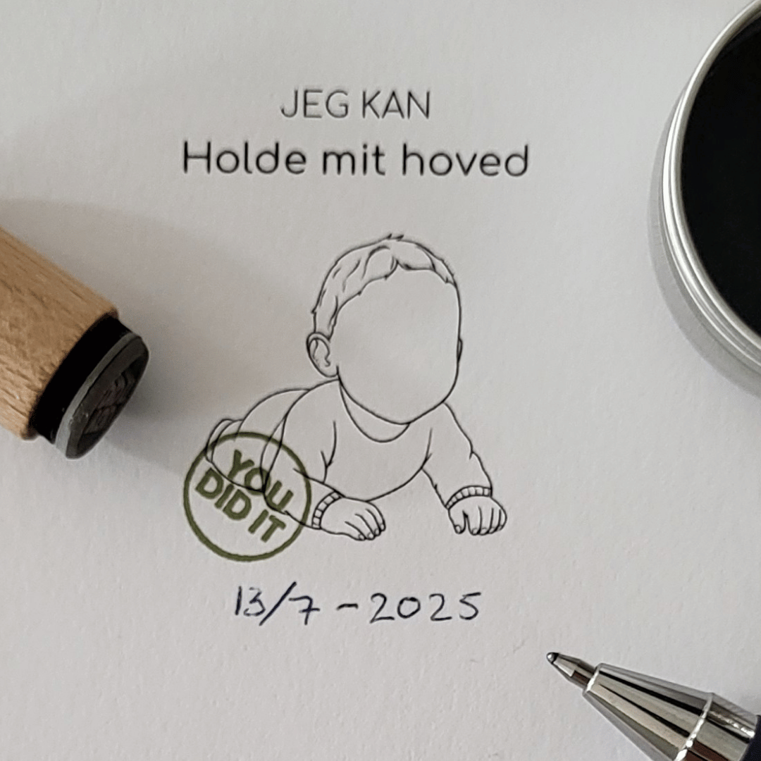Når en milepæl sker, stempler I feltet og gør øjeblikket til en del af hjemmet – en enkel måde at gemme alt det, der betyder noget: det første smil, første ord, første skridt og alle de små skridt, der tilsammen viser udviklingen af jeres barn.